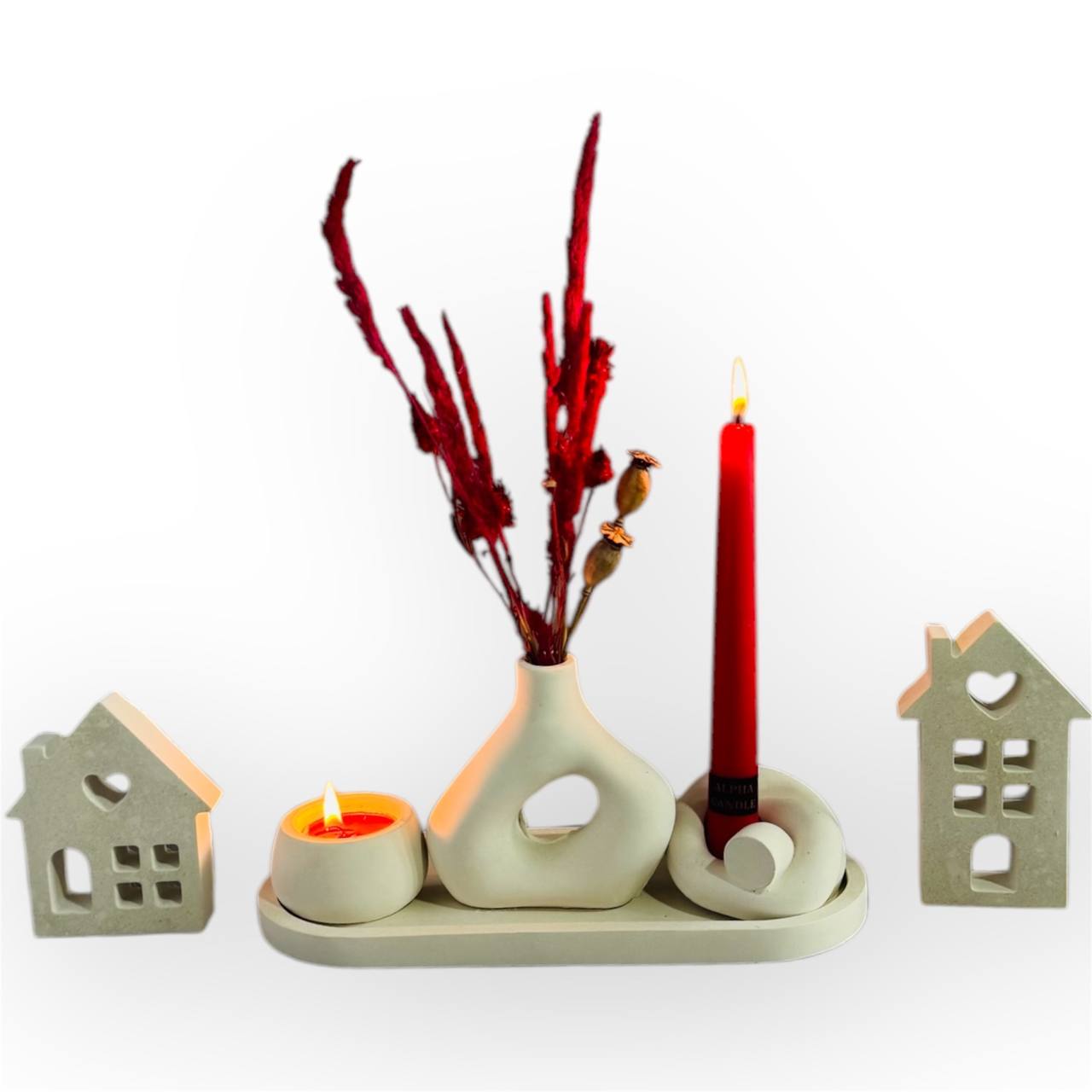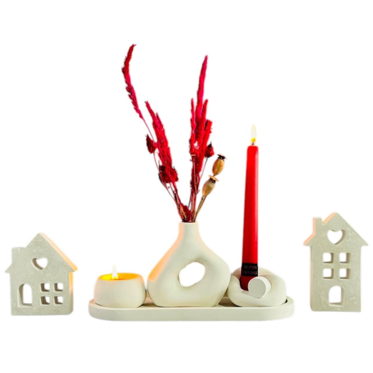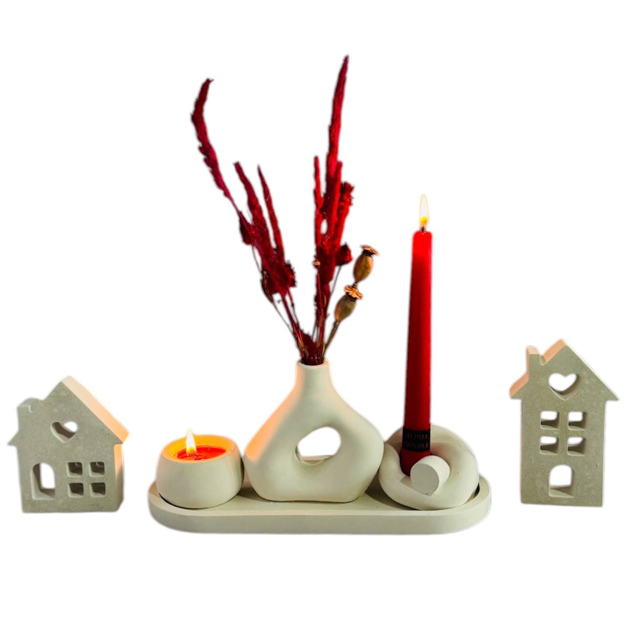 ست سنگ مصنوعی جا شمع وارمر و قلمی و گلدان – زیبایی و آرامش در یک ست دکوراتیو