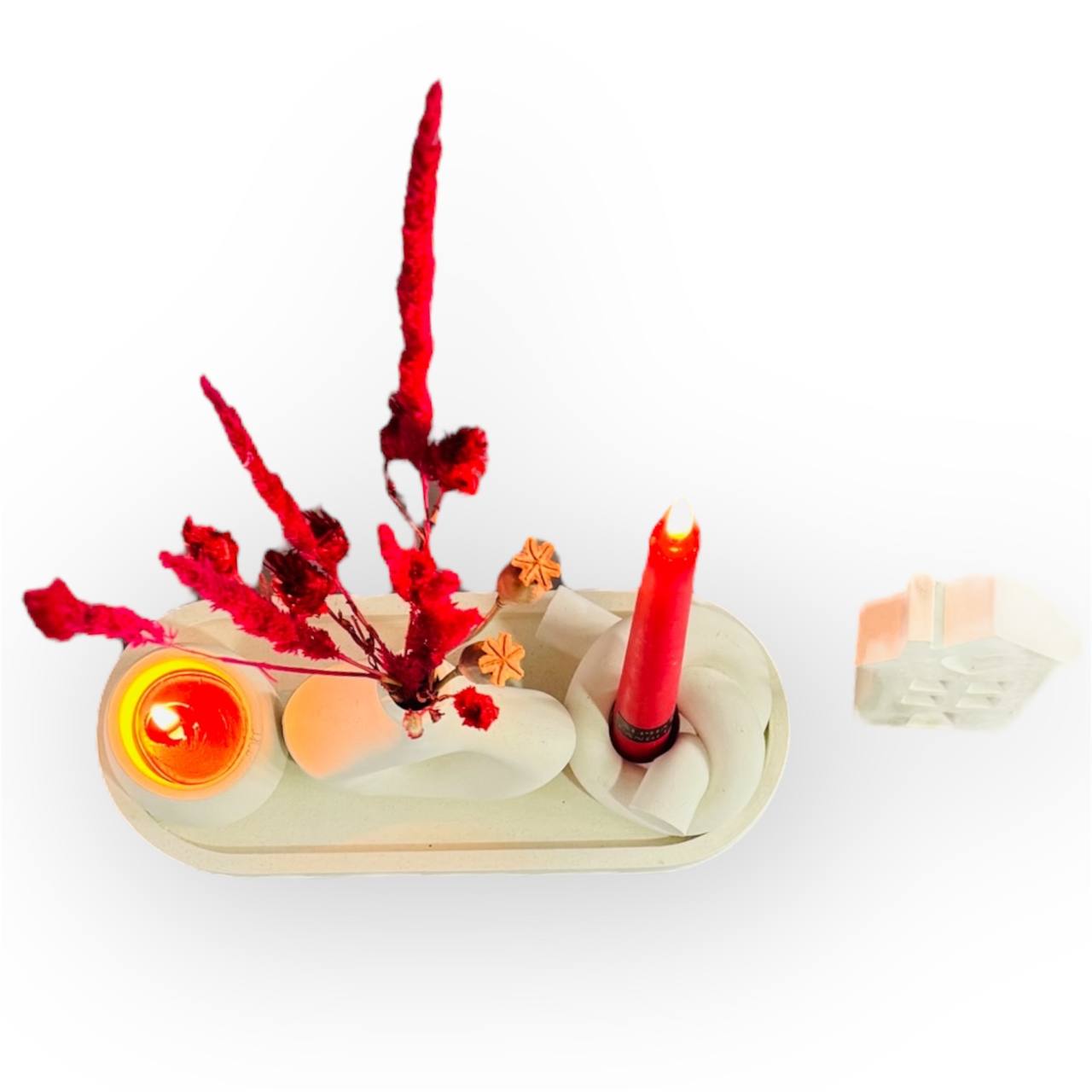 طراحی قلمی این جا شمعی به آن ظاهری خاص و زیبا میبخشد. این قسمت از ست برای استفاده از شمعهای قلمی و تزئینات دیگر مناسب است.