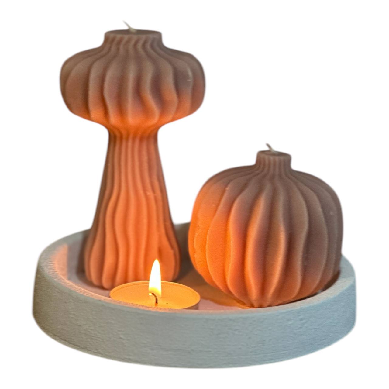 ست شمع به همراه سینی سنگ مصنوعی – طراحی شیک و کاربردی برای فضایی لوکس و آرامشبخش