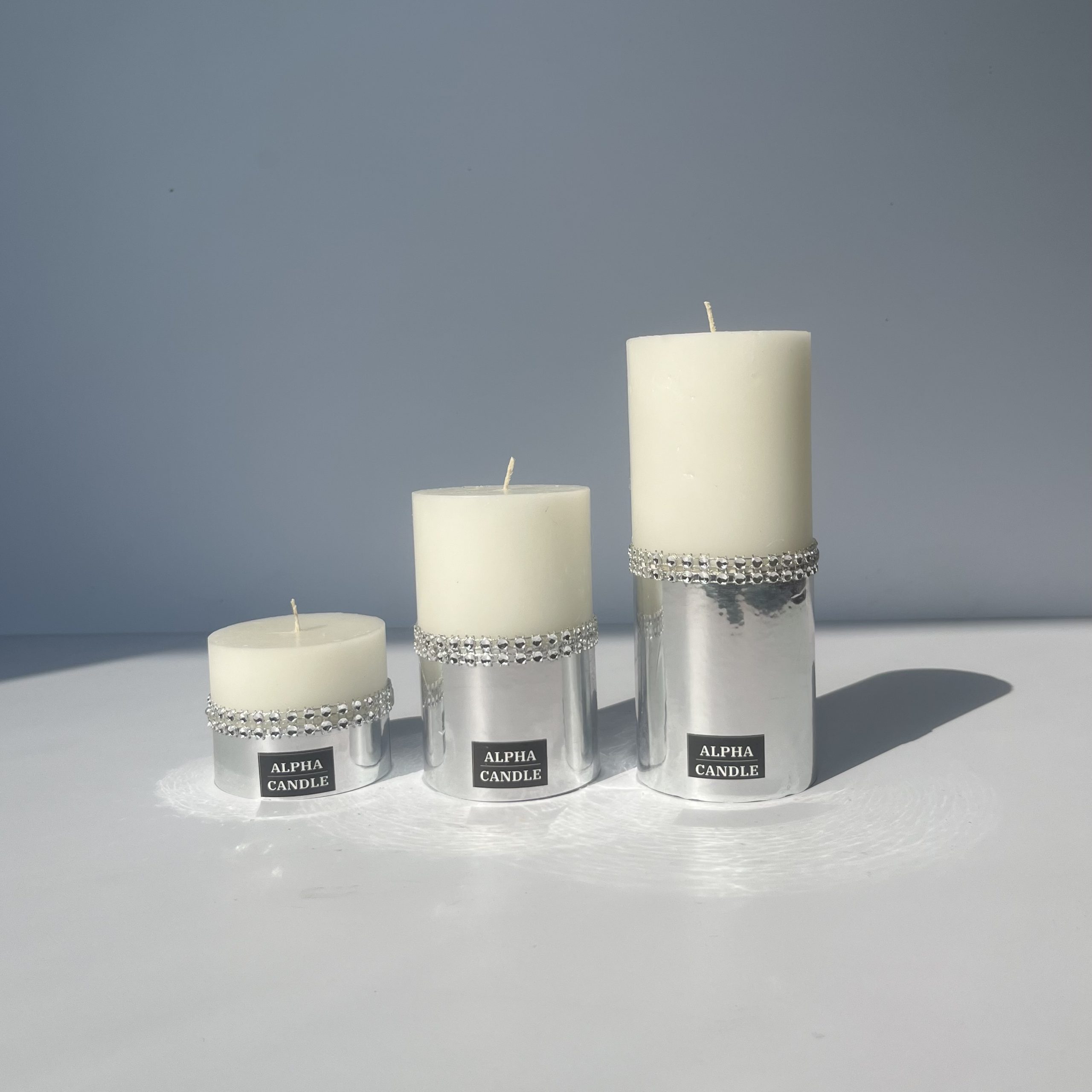 این شمعها با روکش براق و رنگ نقرهای متالیک، نمادی از زیبایی و تجمل هستند.